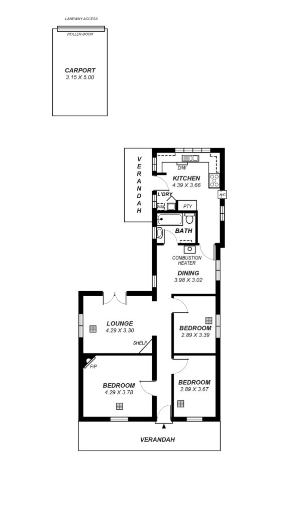 - Building and car accommodation: 3 bedroom, 1 bath, 1 single carport