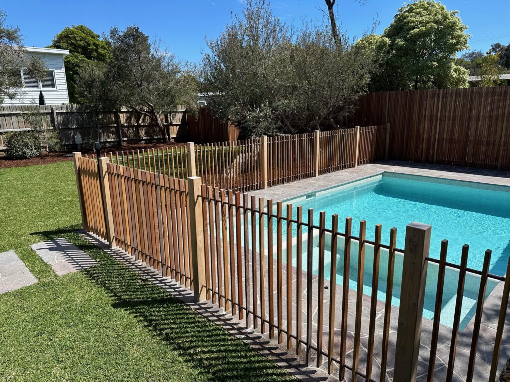 Common fencing options include glass and aluminium, both of which are relatively inexpensive. We went with timber posts and battens which tied in nicely with spotted gum battens we used for new boundary fencing. It’s a more coastal look and requires minimal maintenance. The installation cost was similar to glass.